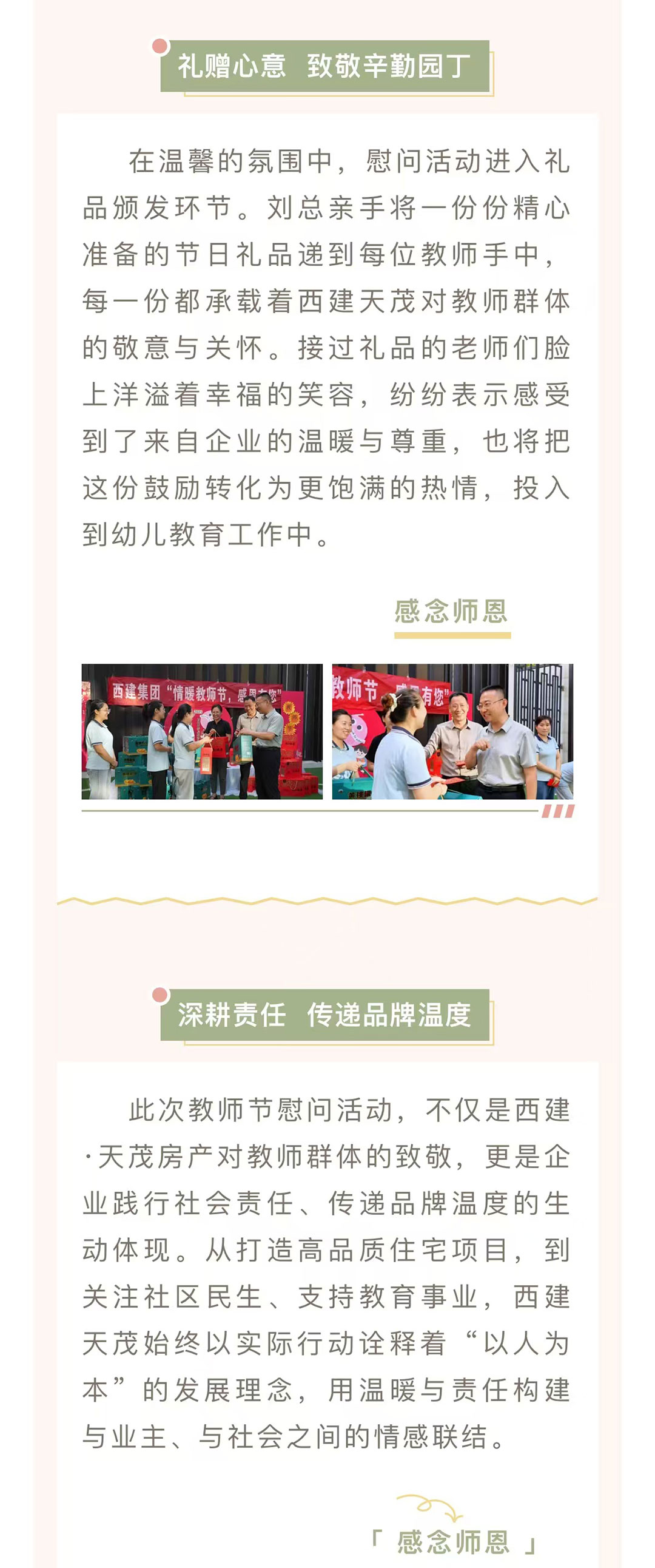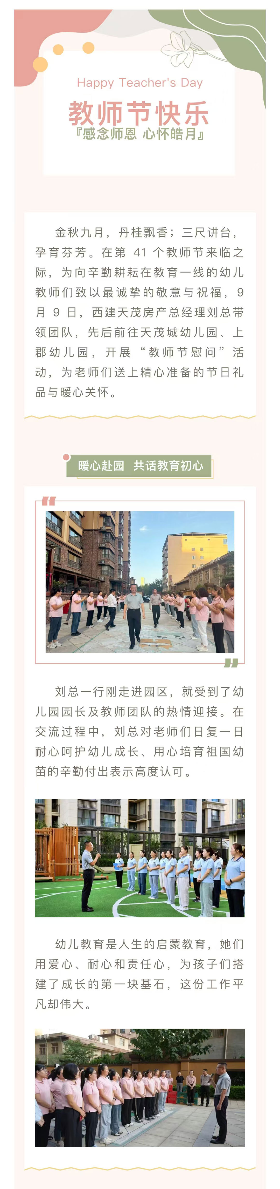 情系園丁 禮贊師恩 | 西建·天茂房產(chǎn)劉忠森總經(jīng)理帶隊慰問天茂城、上郡幼兒園教師